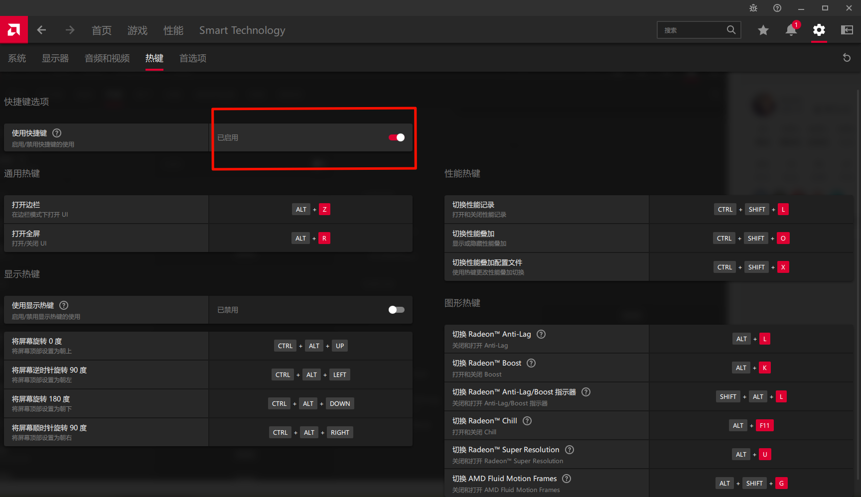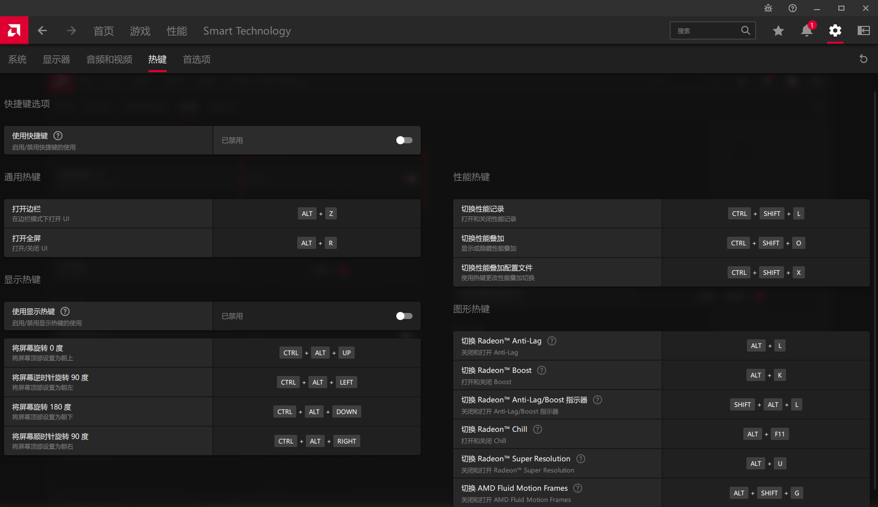 # 禁用Amd所有显卡快捷键(Radeon Software) ## 关闭快捷键 > 今天按下 `Ctrl`+`Shift`+`G`,突然弹出切换直播的图标,我去看显卡设置,全部禁用的呀,怎么还弹出来? 谷歌半天,一堆僵尸网站不知哪爬虫爬的文字,或者是古早系统英尔特显卡,而不得不佩服这位 AMD 软件工程师的小心机 即使全局禁用快捷键按钮灰了,只要局部不为`None`,就还会触发。 所以,总结步骤如下: 桌面右下角托盘 — 右键打开Radeon — ⚙ 设置 — 热键 1)打开使用快捷键 2)单击每一个快捷键区域(红色) 3)按下`Delete` 键(清空成功:`NONE`)  4)关闭全局按钮(:已禁用  搞定。 版本:Radeon Software Adrenalin 2020 ## 关闭GPU、CPU使用率显示 适用于以下情况  和更多信息的  软件定位为`amdow.exe`程序 ### 关闭方式 **快捷键**`CTRL+SHIFT+O`  **或者** 点击`性能-指标-叠加-启用指标叠加-禁用`