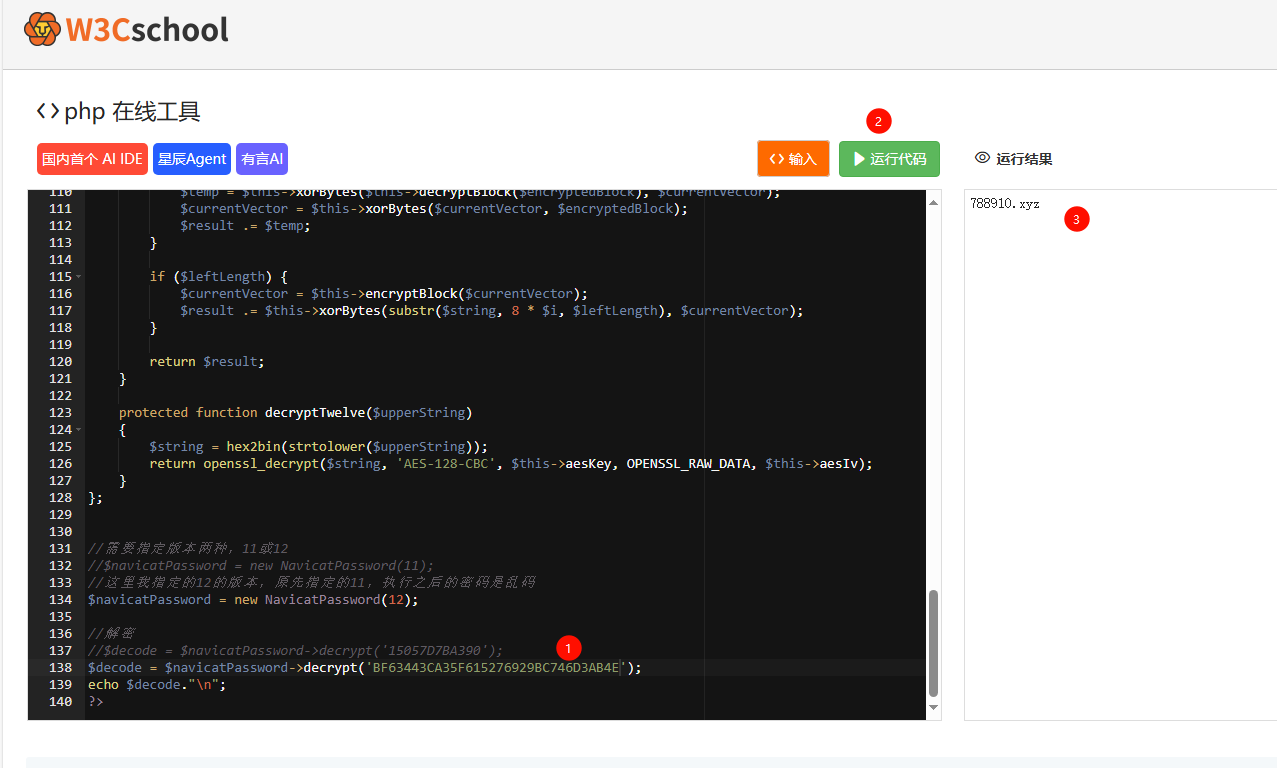 # 查看Navicat保存的密码 ## 问题 > 时间久了,当我们以前连上了navicat 之后,密码忘记了,但是依然能连接,此时我们想查看密码,应该如何操作呢? ## 解决 ## PHP在线解密 ### 步骤1、导出 点击navicat 文件选项,导出连接  注意:勾选需要导出的数据库,导出的时候一定**要勾选导出密码**  导出之后,我们会得到一个`connections.ncx`文件中找到`password`,然后复制出来  复制出来password内容 然后我们要对这个password 密码进行解密。 ### 步骤2、解密 打开小工具 网站: - https://www.w3cschool.cn/tryrun/runcode?lang=php 将如下PHP代码复制进去: ```php version = $version; $this->blowKey = sha1('3DC5CA39', true); $this->blowIv = hex2bin('d9c7c3c8870d64bd'); } public function encrypt($string) { $result = FALSE; switch ($this->version) { case 11: $result = $this->encryptEleven($string); break; case 12: $result = $this->encryptTwelve($string); break; default: break; } return $result; } protected function encryptEleven($string) { $round = intval(floor(strlen($string) / 8)); $leftLength = strlen($string) % 8; $result = ''; $currentVector = $this->blowIv; for ($i = 0; $i < $round; $i++) { $temp = $this->encryptBlock($this->xorBytes(substr($string, 8 * $i, 8), $currentVector)); $currentVector = $this->xorBytes($currentVector, $temp); $result .= $temp; } if ($leftLength) { $currentVector = $this->encryptBlock($currentVector); $result .= $this->xorBytes(substr($string, 8 * $i, $leftLength), $currentVector); } return strtoupper(bin2hex($result)); } protected function encryptBlock($block) { return openssl_encrypt($block, 'BF-ECB', $this->blowKey, OPENSSL_RAW_DATA|OPENSSL_NO_PADDING); } protected function decryptBlock($block) { return openssl_decrypt($block, 'BF-ECB', $this->blowKey, OPENSSL_RAW_DATA|OPENSSL_NO_PADDING); } protected function xorBytes($str1, $str2) { $result = ''; for ($i = 0; $i < strlen($str1); $i++) { $result .= chr(ord($str1[$i]) ^ ord($str2[$i])); } return $result; } protected function encryptTwelve($string) { $result = openssl_encrypt($string, 'AES-128-CBC', $this->aesKey, OPENSSL_RAW_DATA, $this->aesIv); return strtoupper(bin2hex($result)); } public function decrypt($string) { $result = FALSE; switch ($this->version) { case 11: $result = $this->decryptEleven($string); break; case 12: $result = $this->decryptTwelve($string); break; default: break; } return $result; } protected function decryptEleven($upperString) { $string = hex2bin(strtolower($upperString)); $round = intval(floor(strlen($string) / 8)); $leftLength = strlen($string) % 8; $result = ''; $currentVector = $this->blowIv; for ($i = 0; $i < $round; $i++) { $encryptedBlock = substr($string, 8 * $i, 8); $temp = $this->xorBytes($this->decryptBlock($encryptedBlock), $currentVector); $currentVector = $this->xorBytes($currentVector, $encryptedBlock); $result .= $temp; } if ($leftLength) { $currentVector = $this->encryptBlock($currentVector); $result .= $this->xorBytes(substr($string, 8 * $i, $leftLength), $currentVector); } return $result; } protected function decryptTwelve($upperString) { $string = hex2bin(strtolower($upperString)); return openssl_decrypt($string, 'AES-128-CBC', $this->aesKey, OPENSSL_RAW_DATA, $this->aesIv); } }; //需要指定版本两种,11或12 //$navicatPassword = new NavicatPassword(11); //这里我指定的12的版本,原先指定的11,执行之后的密码是乱码 $navicatPassword = new NavicatPassword(12); //解密 //$decode = $navicatPassword->decrypt('15057D7BA390'); $decode = $navicatPassword->decrypt('BF63443CA35F615276929BC746D3AB4E'); echo $decode."\n"; ?> ``` 把你的密码修改,然后点击**运行代码**,右边运行得到密码。  ## Python解密 ### python 代码 [navicat 加密方式](https://github.com/HyperSine/how-does-navicat-encrypt-password) ```python # -*- coding: utf-8 -*- from Crypto.Cipher import AES from binascii import b2a_hex, a2b_hex # 如果text不足16位的倍数就用空格补足为16位 def add_to_16(text): if len(text.encode('utf-8')) % 16: add = 16 - (len(text.encode('utf-8')) % 16) else: add = 0 text = text + ('\0' * add) return text.encode('utf-8') # 加密函数 def encrypt(text): key = 'libcckeylibcckey'.encode('utf-8') mode = AES.MODE_CBC iv = b'libcciv libcciv ' text = add_to_16(text) cryptos = AES.new(key, mode, iv) cipher_text = cryptos.encrypt(text) print(b2a_hex(cipher_text)) # 因为AES加密后的字符串不一定是ascii字符集的,输出保存可能存在问题,所以这里转为16进制字符串 return b2a_hex(cipher_text) # 解密后,去掉补足的空格用strip() 去掉 def decrypt(text): key = 'libcckeylibcckey'.encode('utf-8') iv = b'libcciv libcciv ' mode = AES.MODE_CBC cryptos = AES.new(key, mode, iv) plain_text = cryptos.decrypt(a2b_hex(text)) return bytes.decode(plain_text).rstrip('\0').replace('','') if __name__ == '__main__': # e=encrypt('root') d = decrypt('AE137B98AB3AD0F913EBEF2E8D3C52E9') # 解密 # print("加密:",e) print("解密:", d) ``` ### python执行结果 ```bash `解密: hzjy&flzx3qc Process finished with exit code 0` ``` ## 快照 - https://pic.rmb.bdstatic.com/bjh/3eec3da3a2b/250604/a9499bd50dadcc10532555a70dc5bcf6.png - https://i3.wp.com/pic.rmb.bdstatic.com/bjh/3eec3da3a2b/250604/a9499bd50dadcc10532555a70dc5bcf6.png - https://788910.xyz/api/snapshot?p=c71212af32761910397f90e64efd582d&u=https://pic.rmb.bdstatic.com/bjh/3eec3da3a2b/250604/a9499bd50dadcc10532555a70dc5bcf6.png